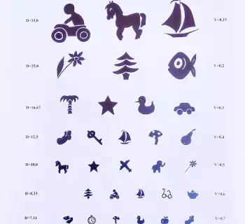 • Они содержат различные символы и буквы, которые пациент должен различать на определенном расстоянии.
