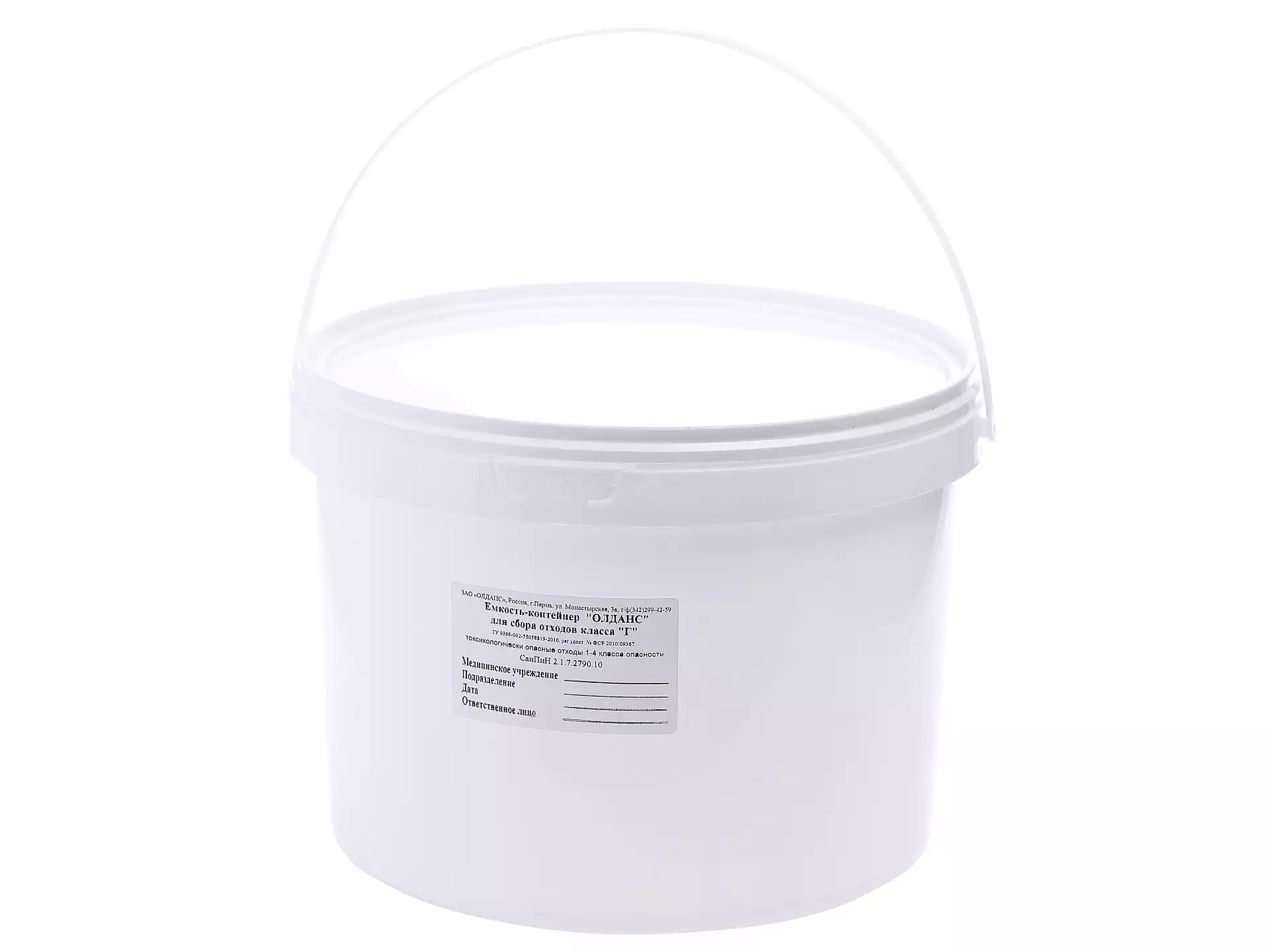 Емкость-контейнер для сбора медицинских отходов (этикетка - класс Г), объем 10,0л, ведро, цвет белый, одноразовый, ОЛДАНС (РОССИЯ)