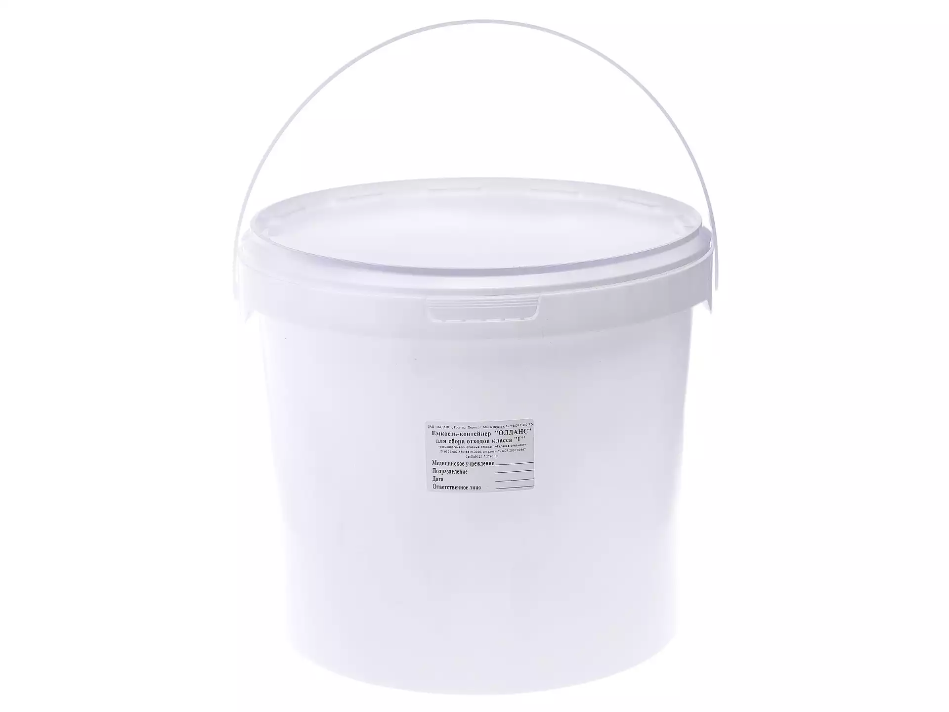 Емкость-контейнер для сбора медицинских отходов (этикетка - класс Г), объем 15,0л, ведро, цвет белый, черная этикетка, одноразовый, ОЛДАНС (РОССИЯ)