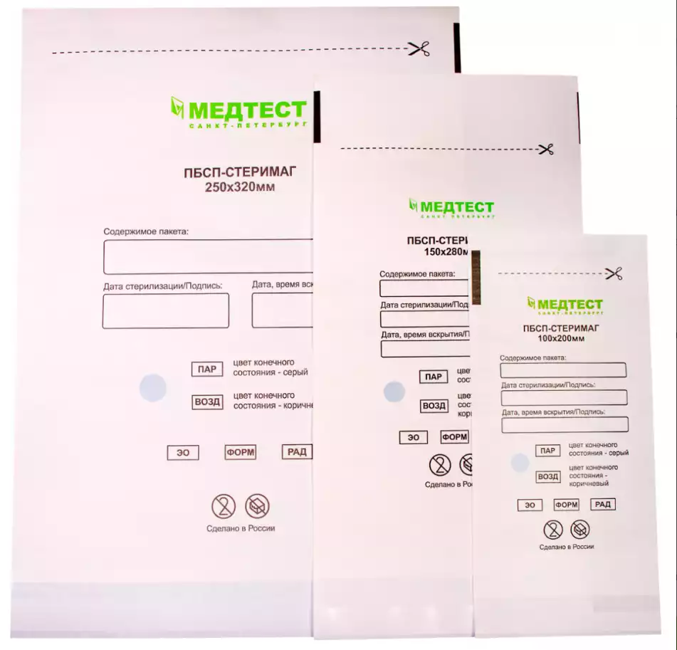 Самоклеящиеся пакеты из крафт-бумаги для стерилизации ПБСП-СТЕРИМАГ, 150*250 мм , 100 шт/упак, Медтест (РОССИЯ)