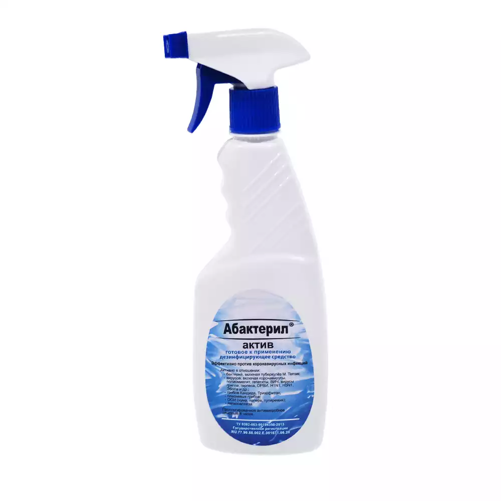 Абактерил - АКТИВ 0,5л, с триггером, кожный антисептик и дезинфектант для поверхностей (готовый раствор), изопропиловый спирт – 64,0%, Рудез (РОССИЯ)