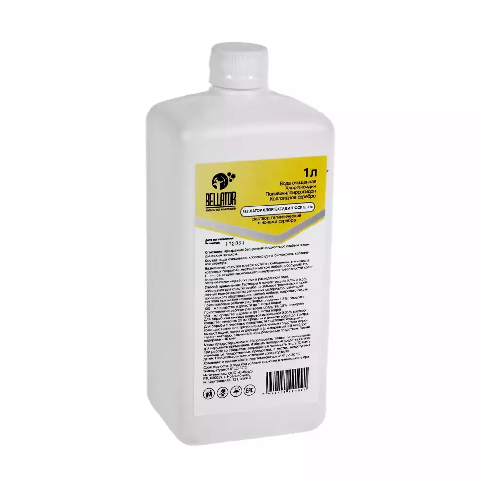 Беллатор-Хлоргексидин Форте 2%, объем 1,0л концентрат, средство дезинфицирующее с антибактериальным эффектом, ООО Сибмед