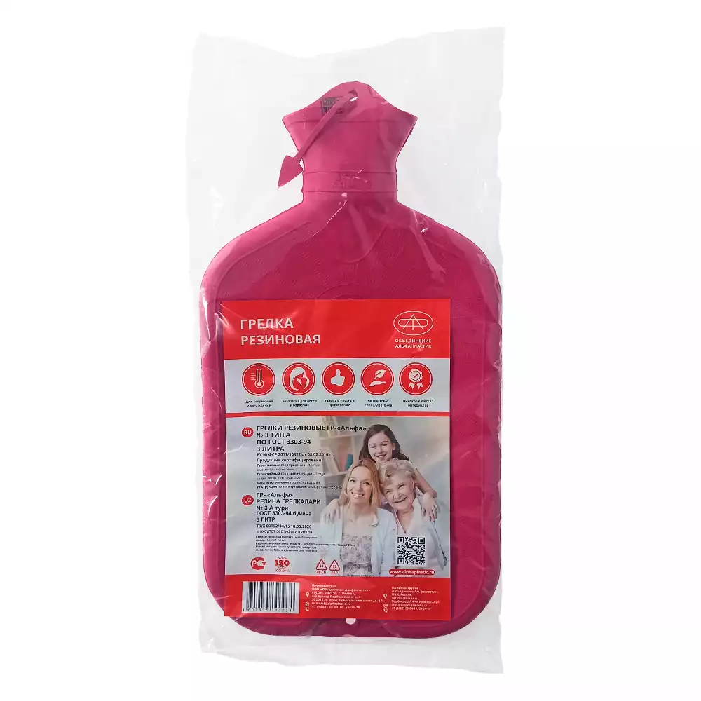 Грелка резиновая А-3, объем 3л, многоразовая, Объединение Альфапластик (РОССИЯ)
