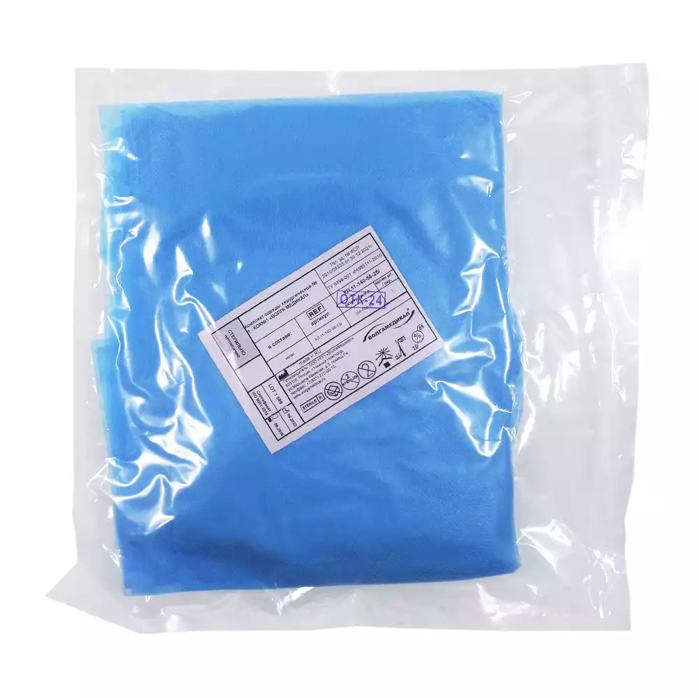 Халат хирургический ЕВРО, длина 140см, материал СМС 42г/м2, размер 58-60, стерильный, Волга Медикал НПП (РОССИЯ)