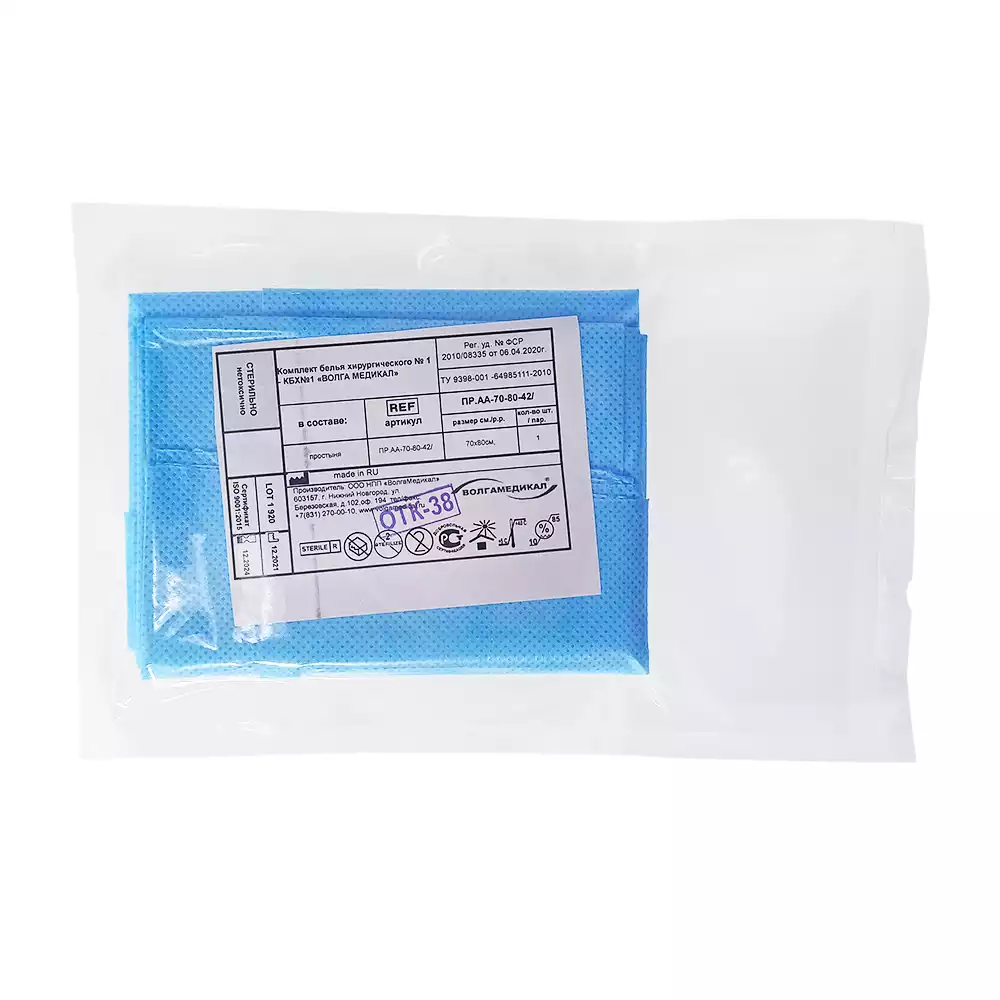 Простыня 70х80см, СМС 42г/м2, хирургическая, стерильная, голубая, Волга Медикал НПП (РОССИЯ)