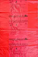 Такие мешки изготавливаются из плотного полиэтилена толщиной не менее 100 мкм. Материал устойчив к проколам и химическому воздействию. Размеры варьируются от 30 до 120 литров в зависимости от потребностей медицинского учреждения. Каждый мешок, как правило, имеет специальное окно для внесения соответствующей информации и инструкцию по применению. Медицинские пакеты класса В могут быть использованы совместно с контейнерами для медотходов В класса аналогичного цвета.