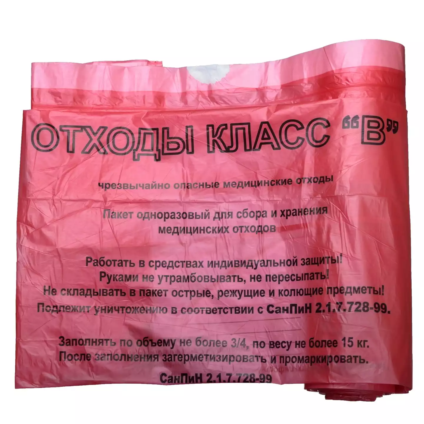 Отходы класса В включают материалы, зараженные микроорганизмами 3-4 групп патогенности, отходы фтизиатрических отделений, микробиологических лабораторий и патологоанатомических подразделений. Для сбора таких отходов требуются специализированные красные медицинские пакеты повышенной прочности.