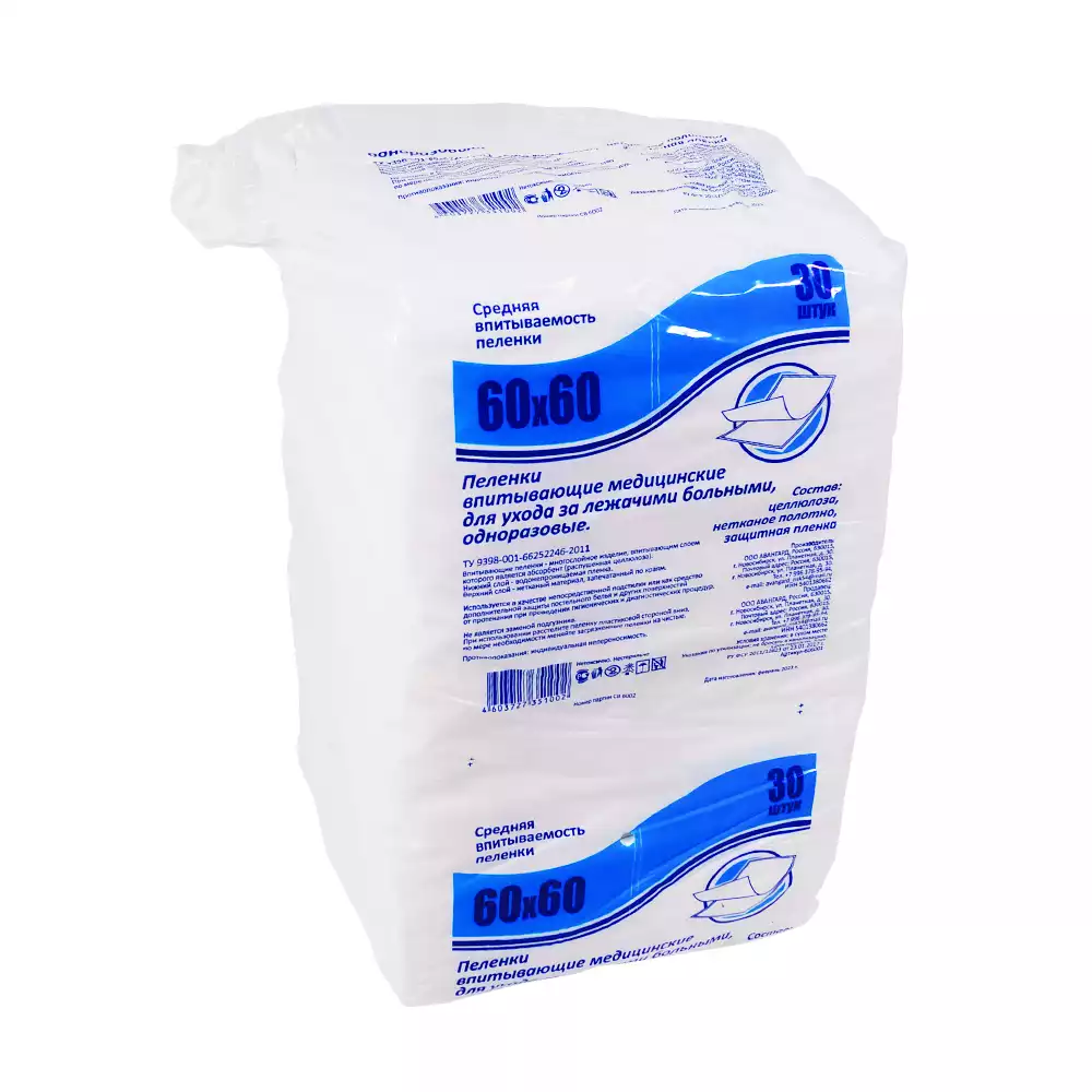 Пеленки медицинские впитывающие одноразовые , нестерильные "Пелигрин", "Classic" 60х60 см, 30шт/упак, Пелигрин Матен