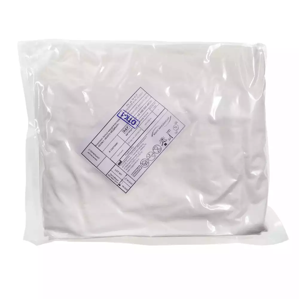 Простыня 140*200см, материал фибрелла 40г/м2, стерильная, белая, Волга Медикал НПП (РОССИЯ)