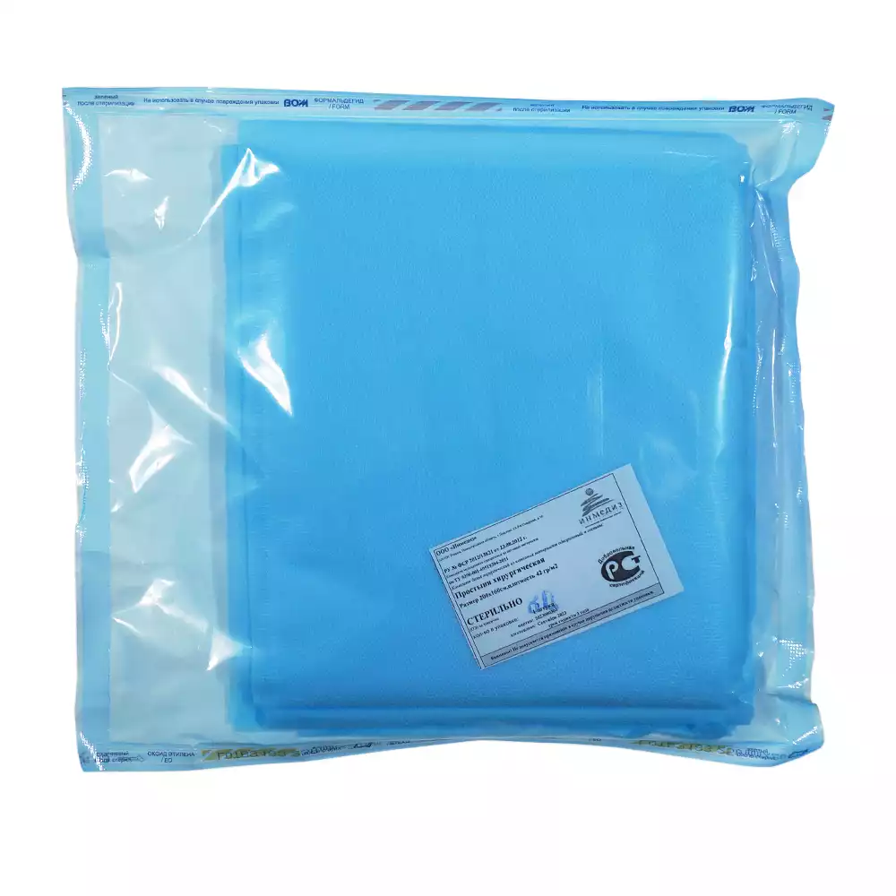 Простыня 160*200см, мвтериал СМС 42г/м2, стерильная, голубая, Инмедиз (РОССИЯ)