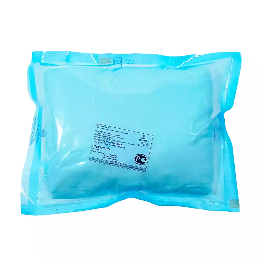 Простыня 140*200см, материал СМС 42г/м2, стерильная, голубая, Инмедиз (РОССИЯ)