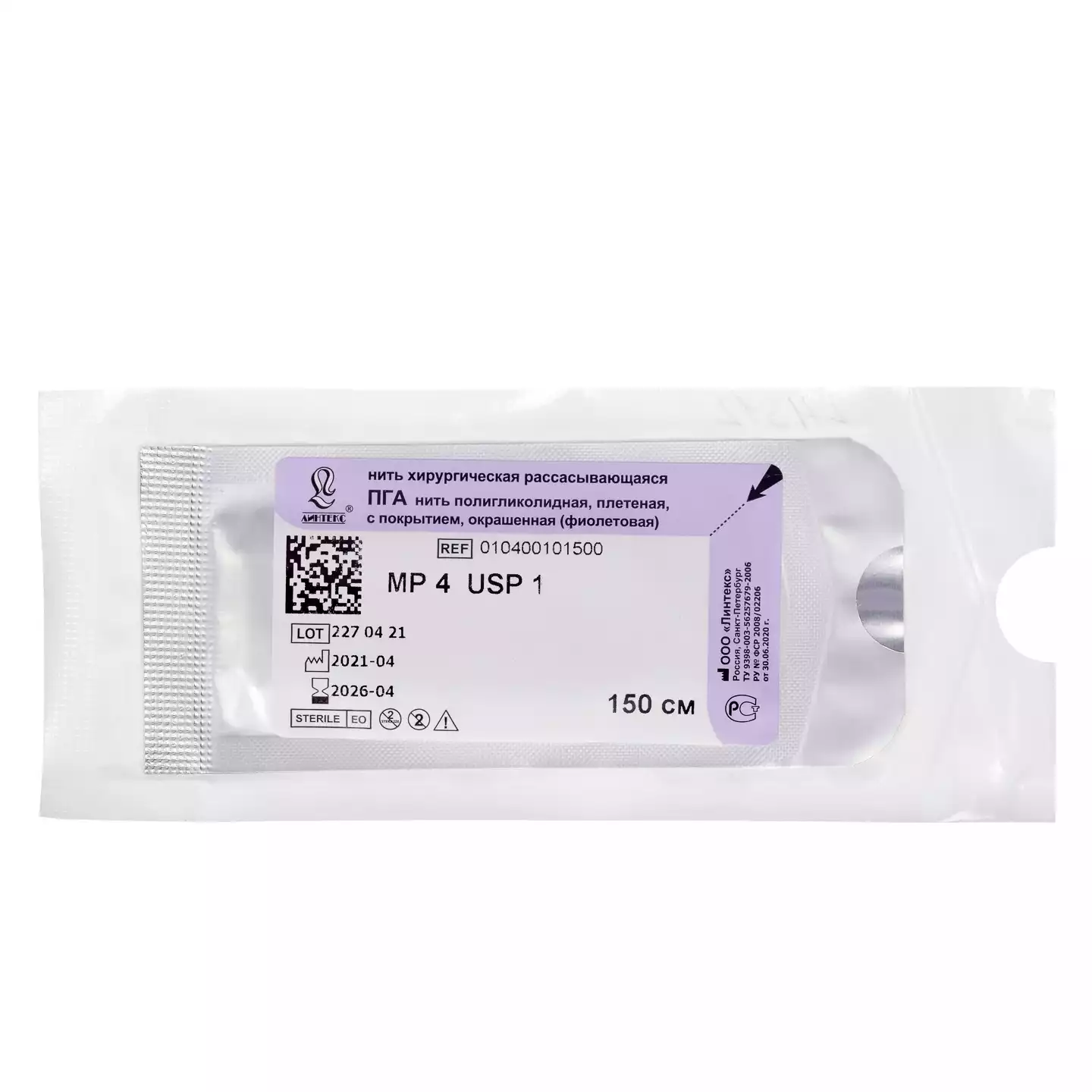 ПГА (PGA) MP4 (USP1), длина 150см, нить полигликолидная плетеная с покрытием, окрашенная (фиол.), Линтекс (РОССИЯ)