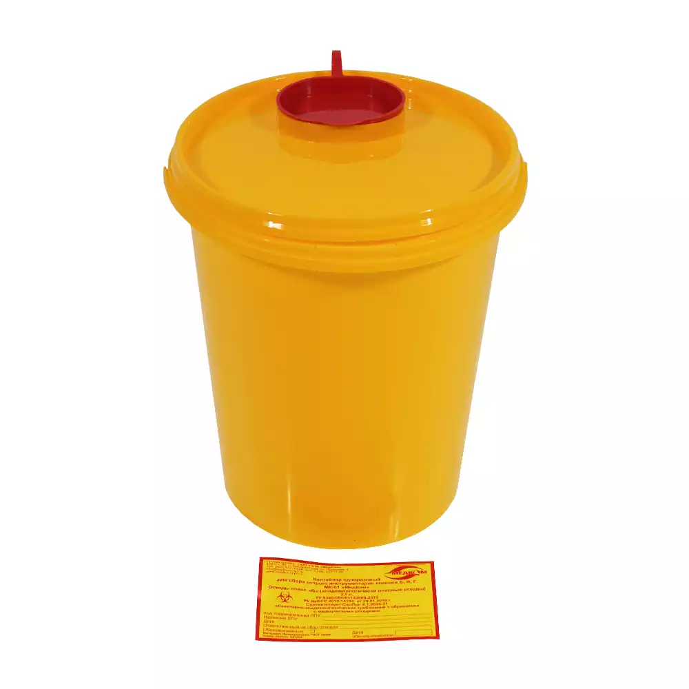 Ёмкость-контейнер для сбора колющих и режущих отходов, одноразовый, класса Б (цвет желтый).